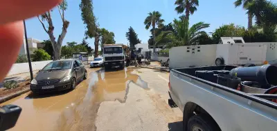 Βλάβη υπέστη το πρωί της Κυριακής 2 Αυγούστου, ο κεντρικός αγωγός ύδρευσης στο Ψαλίδι, στο ύψος του ξενοδοχείου Hippocrates.