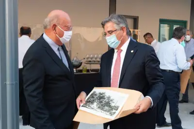 Τη φύτευση Πλατάνου και τα αποκαλυπτήρια αναμνηστικής μαρμάρινης πλάκας πραγματοποίησαν από κοινού ο Πρόεδρος της Ιατρικής Σχολής του Πανεπιστημίου Πατρών κ. Δημήτριος Γούμενος και ο Αντιπρόεδρος του Δ.Ι.Ι.ΚΩ κ. Νικόλαος Στ. Μανούσης κατά τη διάρκεια της εκδήλωσης των εγκαινίων των ανακαινισμένων αμφιθεάτρων και της βιβλιοθήκης της Ιατρικής Σχολής του Πανεπιστημίου Πατρών, παρουσία των Πρυτανικών Αρχών.