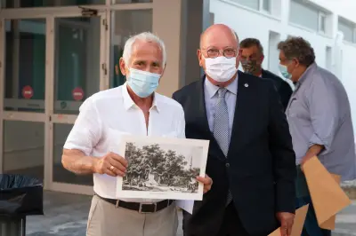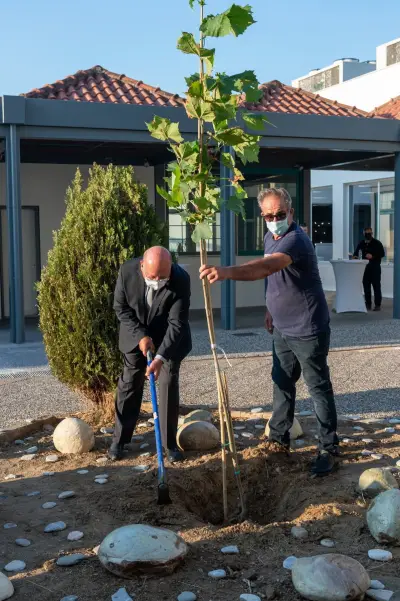 Όπως προβλεπόταν από το πρόγραμμα της εκδήλωσης, ο Πρόεδρος της Ιατρικής Σχολής μαζί με τον Αντιπρόεδρο του ΔΙΙΚΩ, φύτευσαν τον Πλάτανο και ακολούθως έκαναν τα αποκαλυπτήρια της αναμνηστικής μαρμάρινης πλάκας, καταχειροκροτούμενοι από τους παρευρισκόμενους.