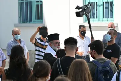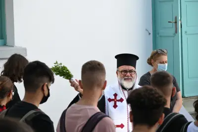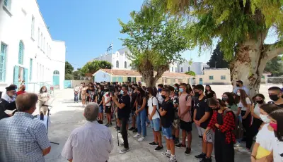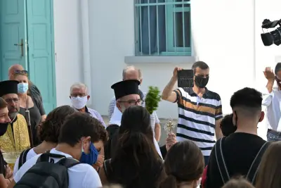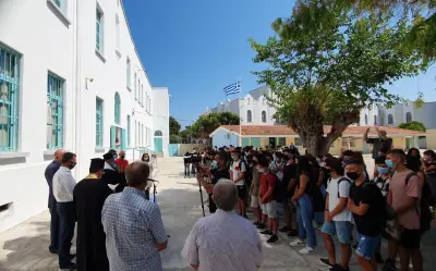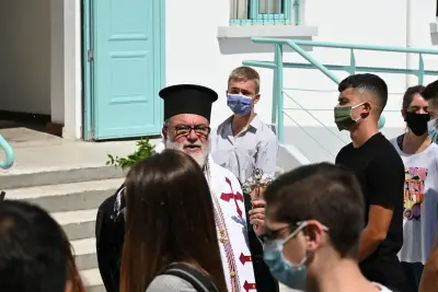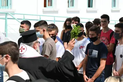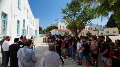 Ο Αγιασμός στο 1ο Λύκειο Κω! Με μάσκες και μέτρα προστασίας κατά της πανδημίας, το πρώτο κουδούνι