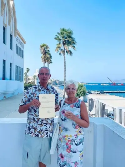4) Oι Έλληνες Παναγιώτης & Μαρία Αδαμοπούλου από τη Μεσσηνία. Από το 1979 έχουν έρθει 80 φορές στο νησί μας και σκέφτονται να αγοράσουν και σπίτι εδώ. Θυμούνται με νοσταλγία τα πρώτα χρόνια που ήρθαν στο νησί μας, όταν στην περιοχή«Λάμπη» είχε πολλές καλαμιές και η οδός Εθελοντών Πολεμιστών ήταν χωματόδρομος, ενώ σε όλη την περιοχή υπήρχαν μόνο δύο ξενοδοχεία!