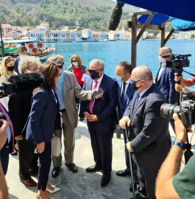 Οι πρόεδροι του ΕΒΕΔ κ. Γιάννης Πάππου, του ΕΕΑ κ. Γιάννης Χατζηθεοδοσίου και της ΓΣΕΒΕE κ. Γιώργος Καββαθάς, έστειλαν από το Καστελλόριζο πολλαπλά μηνύματα υψηλού συμβολισμού προς κάθε κατεύθυνση σε μια εξαιρετικά κρίσιμη περίοδο, καταδεικνύοντας ότι η ομόνοια, η συνέργεια και η ομοψυχία είναι υπεράνω των προκλήσεων και των αμφισβητήσεων.