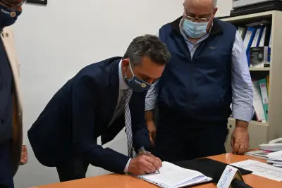 Στις 12:30 ακολούθησε η παράδοση - παραλαβή των μηχανημάτων στο νοσοκομείο της Κω, όπου υπογράφηκαν τα σχετικά έγγραφα από τον κ. Αλέξανδρο Παπούλη και τον Διοικητή του Νοσοκομείου Κω κ. Σταμάτη Βασιλειάδη.