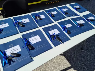 Η παράδοση έγινε στους δημάρχους και στους προέδρους των μικρών νησιών που ήταν παρόντες στην τελετή και συγκεκριμένα, στον Δήμαρχο Θήρας, Αντώνη Σιγάλα, Αμοργού, Λευτέρη Καραΐσκο, Κιμώλου, Κωνσταντίνο Βεντούρη, Κύθνου, Σταμάτη Γαρδέρη, Αντιπάρου, Αναστάσιο Φαρούπο, Λειψών, Φώτη Μάγγο, στην Δήμαρχο Φολεγάνδρου, Ευθαλία Παπαδοπούλου, στον Πρόεδρο της Θηρασιάς, Πέτρο Καραμολέγκο, Δονούσας, Χρήστο Σιγάλα, Κουφονησίων, Αντώνη Κωβαίο, Ηρακλειάς, Πέτρο Γαβαλά, και τον δημοτικό σύμβουλο από την Σχοινούσα, Νίκο Νομικό. Το ασθενοφόρο για λογαριασμό του Δήμου Μεγίστης, παρέλαβε ο Περιφερειάρχης, Γιώργος Χατζημάρκος.