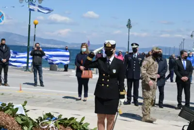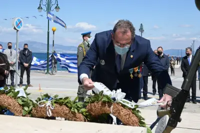 Στη συνέχεια ακολούθησε η κατάθεση στεφάνων στο Ηρώο από τους: