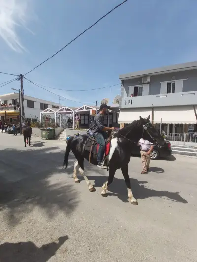 Μπορεί το έθιμο των ιπποδρομιών στο Πυλί μπροστά από την εκκλησία του Αγίου Γεωργίου να μην θύμιζε τα προηγούμενα χρόνια, παρόλα αυτά οι αναβάτες παρέλασαν με τα άλογα τους τιμώντας το έθιμο.