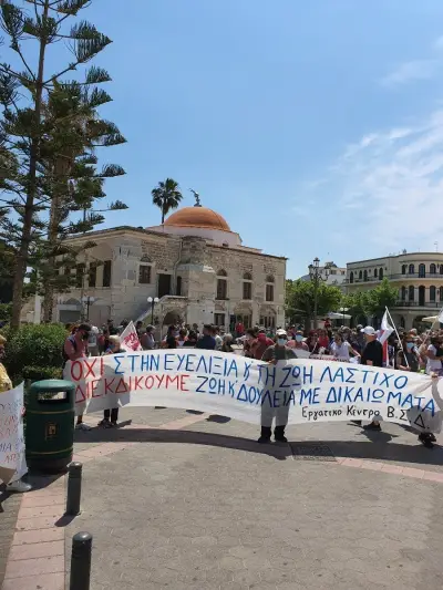 Απεργιακή συγκέντρωση με μεγάλη συμμετοχή πραγματοποιήθηκε από το Εργατικό Κέντρο ΒΣΔ το πρωί της Πέμπτης 10 Ιουνίου στην Πλατεία Ελευθερίας Κω.