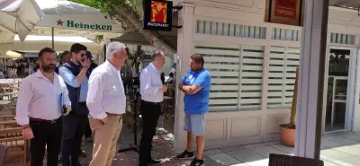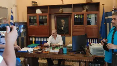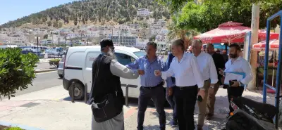 Στη συνέχεια ο Πρόεδρος της ΕΛΛΗΝΙΚΗΣ ΛΥΣΗΣ με τη συνοδεία του κατευθύνθηκαν στην κεντρική πλατεία του νησιού στο λιμάνι , όπου είχε την ευκαιρία να συνομιλήσει με ιδιοκτήτες καταστημάτων, ενώ ακολούθησε επίσκεψη στο δημοτικό μέγαρο όπου μαζί με τον Δήμαρχο της Καλύμνου Δημήτρη Διακομιχάλη συζήτησαν τα προβλήματα του νησιού .