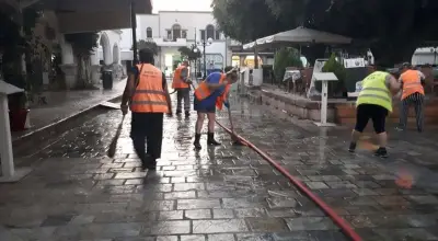 Σε εκτεταμένο πλύσιμο και καθαρισμό πεζόδρομων και πλατειών του ιστορικού κέντρου της Κω προχώρησαν ξημερώματα Τετάρτης, 1η Σεπτεμβρίου, συνεργεία του Δήμου μας.