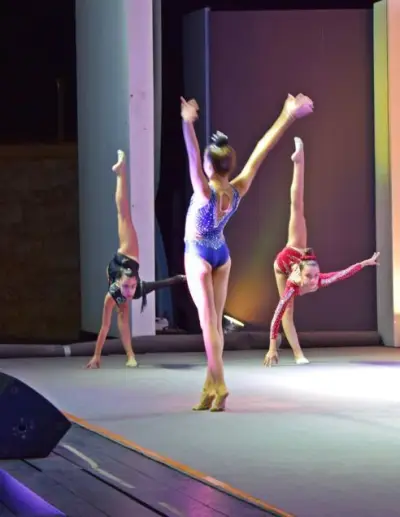 Τα χρυσά κορίτσια της Κω,που λίγες ημέρες νωρίτερα είχαν διακριθεί στο περιφερειακό πρωτάθλημα ρυθμικής γυμναστικής Ν. Αιγαίουστο οποίο κατάφεραν να κερδίσουν αρκετά μετάλλια, παρουσίασαν στη σκηνή μια σειρά από εντυπωσιακές κινήσεις με τη μπάλα ρυθμικής, το στεφάνι, το σχοινάκι, την κορδέλα και την κορύνα.Το πρόγραμμα συνδύαζε ευελιξία και συγκέντρωση, μουσικήκαι χορό.