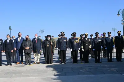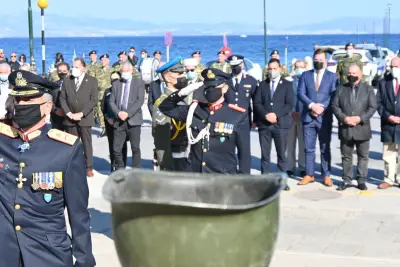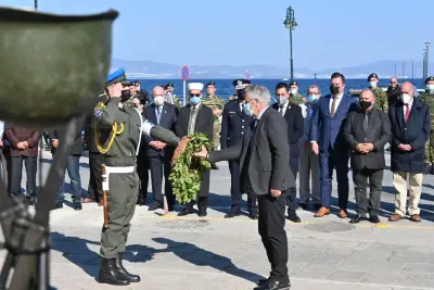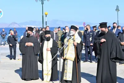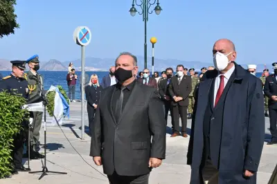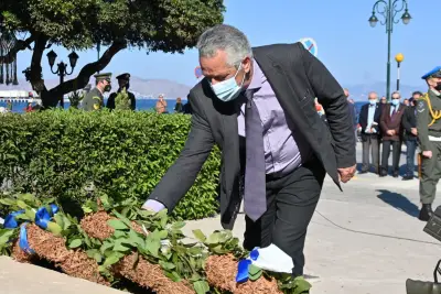 Στις 12.30 τελέστηκε η επιμνημόσυνη δέηση στο Ηρώο από το Σεβασμιότατο Μητροπολίτη Κώου και Νισύρου κ.κ. Ναθαναήλ και κατάθεση στεφάνων στο Βωμό της Πατρίδας με την παρουσία των Αρχών.