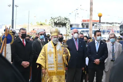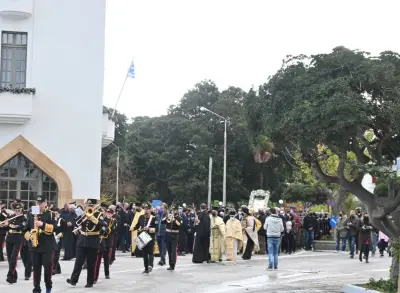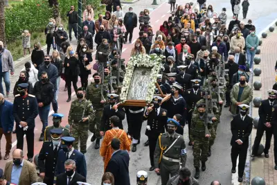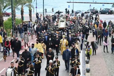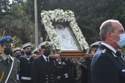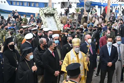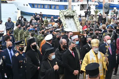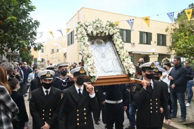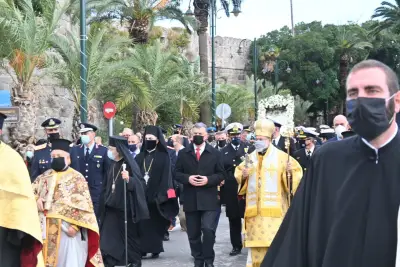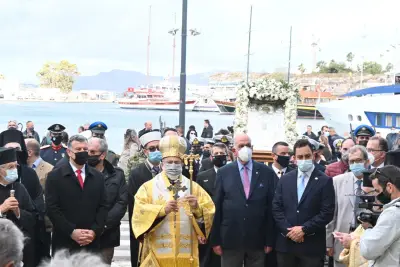 Στις 10.30 π.μ. εψάλη η δοξολογία για την Εορτή του Προστάτη του Πολεμικού Ναυτικού και του Λιμενικού Σώματος και λίγο μετά τις 11:00 ξεκίνησε η Λιτανεία στην πόλη της Κω.