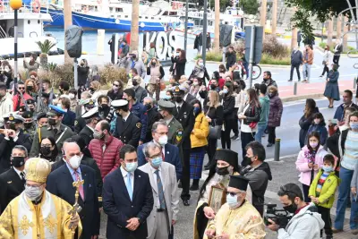 Τον πανηγυρικό της ημέρας εκφώνησε ο Διοικητής του Ναυτικού Σταθμού Κω Γεώργος Σταματόγιαννης.