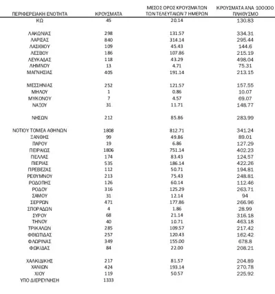 Συνολικά τα νέα εργαστηριακά επιβεβαιωμένα κρούσματα της νόσου που καταγράφηκαν τις τελευταίες 24 ώρες στην Ελλάδα είναι 35.580!