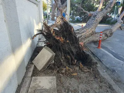 Το δέντρο έπεσε γύρω στις 15:00 το μεσημέρι της Τετάρτης 9 Φεβρουαρίου, στην οδό Ελευθερίου Βενιζέλου (ανάμεσα στην πίσω είσοδο του 1ου Λυκείου Κω και του κτιρίου της τράπεζας Πειραιώς), χωρίς ευτυχώς να τραυματιστεί κάποιος συμπολίτης μας ή να σημειωθούν ζημιές σε μαγαζιά και σπίτια της περιοχής.