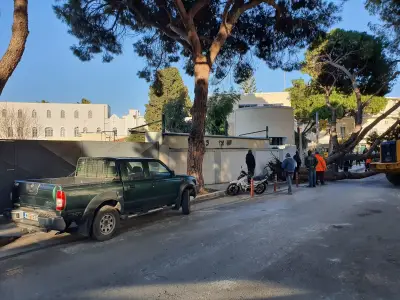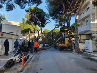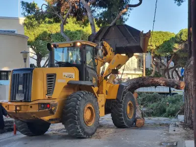 Ο Αντιδήμαρχος Πρασίνου Σταμάτης Α. Καμπουράκης μαζί με τα στελέχη του Δήμου (την προϊσταμένη της Διεύθυνσης Περιβάλλοντος και Καθαριότητας Δήμου Κω κ. Ζέτα Τσιρπανλή, τον τεχνικό σύμβουλο του Δημάρχου Πέτρο Πετρή, τον Σύμβουλο της Κοινότητας Κω Μανόλη Καματερό) και το προσωπικό της Υπηρεσίας Πρασίνου και της Πολιτικής Προστασίας βρέθηκαν στο σημείο για την επιχείρηση απομάκρυνσης του δέντρου, το οποίο είχε κλείσει την κυκλοφορία.