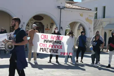 Να σημειωθεί ότι καθ' όλη τη διάρκεια της πορείας ακουγόντουσαν συνθήματα για τα προβλήματα που αντιμετωπίζει το νησί μας στους τομείς της δημόσιας υγείας και του οδικού δικτύου αλλά και συνθήματα στην μνήμη των δύο αδικοχαμένων παιδιών.