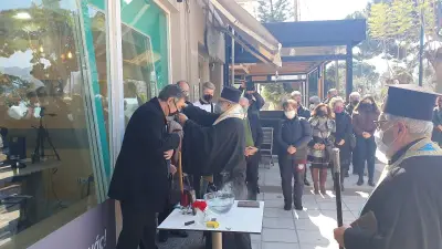 Πριν την εκδήλωση για την Κατερίνα πραγματοποιήθηκαν τα εγκαίνια των νέων γραφείων του Σταθμού καθώς και η κοπή της Πρωτοχρονιάτικης πίτας.