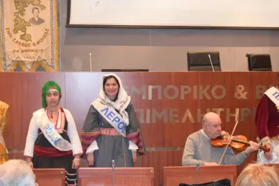Ο Αντιπεριφερειάρχης Πρωτογενούς Τομέα κ. Φιλήμονας Ζαννετίδης, εκπροσωπώντας τον Περιφερειάρχη Νοτίου Αιγαίου κ. Γιώργο Χατζημάρκο, απηύθυνε χαιρετισμό στους παρευρισκομένους, ενώ στη συνέχεια η Β΄ Αντιπρόεδρος της Ομοσπονδίας Δωδεκανησιακών Σωματείων Αθηνών - Πειραιώς κ. Βουρεξάκη Κατερίνα (από την Κάλυμνο) προλόγισε τον πρώην Υφυπουργό Εξωτερικών και συμπατριώτη μας κ. Ιωάννη Βαληνάκη.