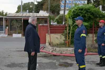 Τις εγκαταστάσεις της Πυροσβεστικής Υπηρεσίας Κω επισκέφθηκε το απόγευμα της Παρασκευής ο Υπουργός Κλιματικής Κρίσης και Πολιτικής Προστασίας Χρήστος Στυλιανίδης, συνοδευόμενος από τον Γενικό Γραμματέα Πολιτικής Προστασίας, Βασίλειο Παπαγεωργίου και τον Αρχηγό του Πυροσβεστικού Σώματος, Αντιστράτηγο Αλέξιο Ράπανο.