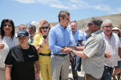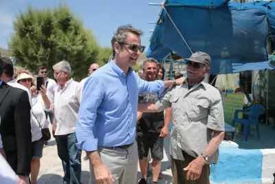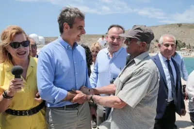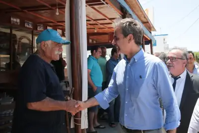 Ο Κυριάκος Μητσοτάκης περπάτησε στο νησί και είχε την ευκαιρία να συναντήσει παλιούς γνώριμους και να συζητήσει με τους κατοίκους για τα προβλήματα που τους απασχολούν. «Eπιτελείτε ένα σπουδαίο έργο, όχι μόνο για τον πρωτογενή τομέα αλλά και ένα εθνικό έργο», είπε ο κ. Μητσοτάκης κατά τη συνομιλία του με τους ψαράδες του νησιού.