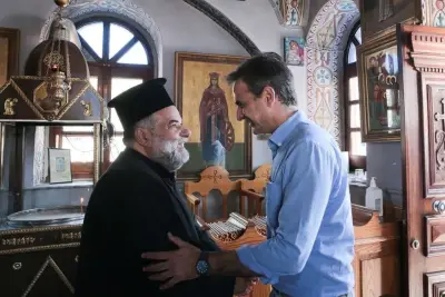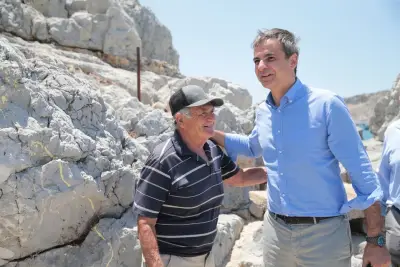 Οι κάτοικοι της ακριτικής Ψερίμου υποδέχτηκαν τον Κυριάκο Μητσοτάκη στο νησί τους νωρίτερα το μεσημέρι.