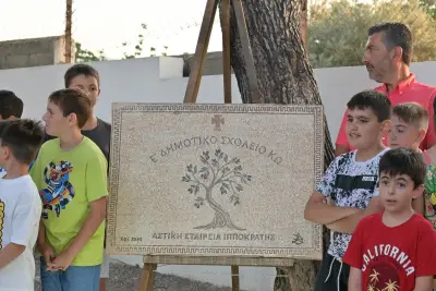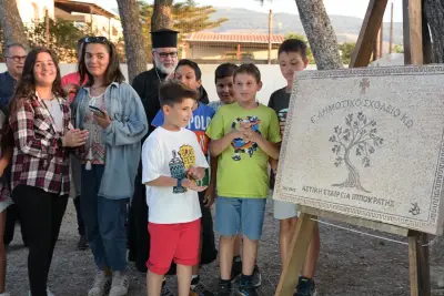 Τα αποκαλυπτήρια του ψηφιδωτού της Ε τάξης και η προβολή της ταινίας μικρού μήκους της Δ τάξης με τίτλο ''Ήρωες'', πραγματοποιήθηκαν το απόγευμα της Δευτέρας στον χώρο του 5ου Δημοτικού Σχολείου Κω.