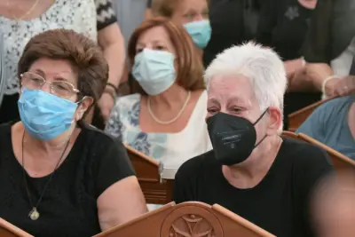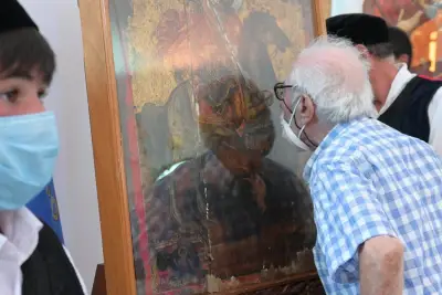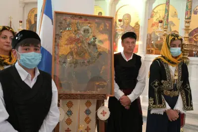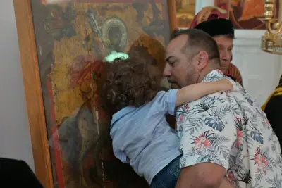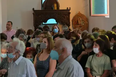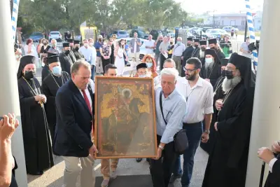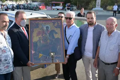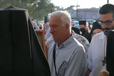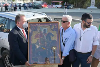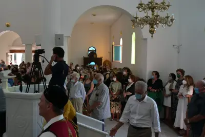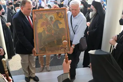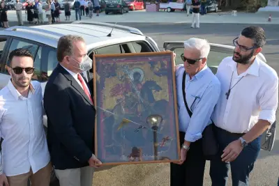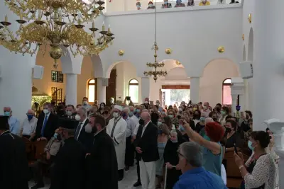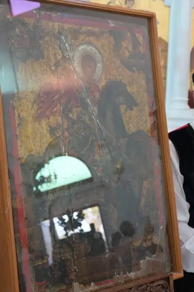Η οικογένεια του κ. Γιώργιου Σπύρου στις 19:00 μετέφερε την εικόνα του Αγίου Γεωργίου στο Ιερό Ναό, με τις καμπάνες να χτυπούν χαρμόσυνα και τους παρευρισκόμενους να ''λυγίζουν'' από συγκίνηση.