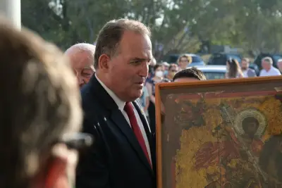 ''Στις 10 Ιουλίου θα τελεστούν τα εγκαίνια για να μπορεί να αναπαυθεί η καρδιά μας, η καρδιά των ανθρώπων που ήρθαν από απέναντι, κουβαλώντας την εικόνα του Αγίου Γεωργίου στην αγκαλιά τους, αφήνοντας πίσω τους πολύτιμα πράγματα για να σώσουν αυτή την εικόνα.''