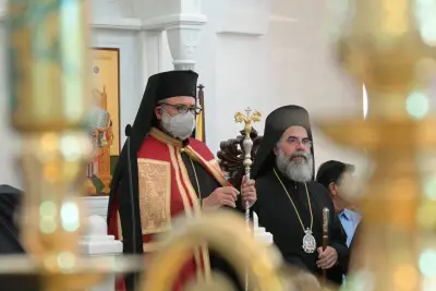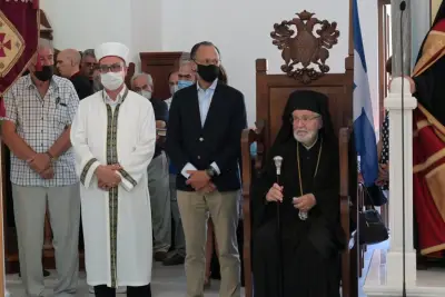 Συμμετείχαν ο Σεβασμιώτατος Μητροπολίτης Κώου και Νισύρου κ. Ναθαναήλ, ο Σεβασμιώτατος Μητροπολίτης Αγκύρας κ. Ιερεμίας, ο Σεβασμιώτατος Μητροπολίτης Σύμης, Τήλου, Χάλκης και Καστελλορίζου Χρυσόστομος Β΄, ο Αρχιμανδρίτης Ναθαναήλ, Ηγούμενος της Μονής Ιβήρων και ο Ιερός κλήρος.