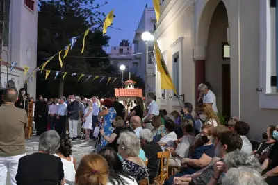 Το απόγευμα της Δευτέρας 25 Ιουλίου 2022 με μεγάλη συμμετοχή κόσμου τελέστηκε στον προαύλιο χώρο του Ναού της Αγίας Παρασκευής, αφού δεν έχουν αποκατασταθεί ακόμα οι ζημιές στο Ναό από το σεισμό του 2017, Μέγας Αρχιερατικός Εσπερινός.