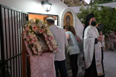 Με κατάνυξη και ιεροπρέπεια τελέστηκε απόψε ο πανηγυρικός εσπερινός του Αγίου Παντελεήμονα, στο φερώνυμο Ιερό παρεκκλήσιο στην πόλη της Κω, χοροστατούντος του Σεβασμιωτάτου Μητροπολίτου Αγκύρας κ. Ιερεμία.