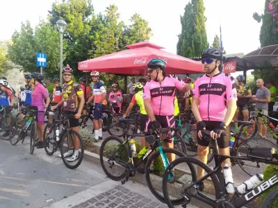 Εντυπωσιακή η παρουσία από το CLUB ZEPPELIN με τις ροζ στολές με περισσότερα από 10 άτομα από τους 24 που εκίνησαν. Η εντυπωσιακή παρουσία όλων στους δρόμους ήταν η καλύτερη διαφήμιση για το νησί του ποδηλάτου.