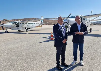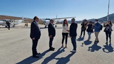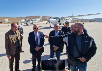 Με την πρώτη τακτική πτήση της Cycladic IFLY από Ρόδο προς Σύρο, πέταξε σήμερα το μεσημέρι ο Περιφερειάρχης Νοτίου Αιγαίου, Γιώργος Χατζημάρκος και συνεργάτες του, χαιρετίζοντας την πρωτοβουλία του ιδιοκτήτη της Cycladic, εφοπλιστή Νικόλαου Λυκιαρδόπουλου, να κάνει πράξη την αεροπορική ενδοσυγκοινωνία στο Νότιο Αιγαίο, συμβάλλοντας έτσι καθοριστικά στην εξυπηρέτηση των κατοίκων, στη βελτίωση της καθημερινότητάς τους, αλλά και στην ενίσχυση της οικονομίας και της τουριστικής ταυτότητας των νησιών.