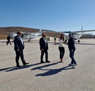 Στο αεροδρόμιο της Σύρου, τον Περιφερειάρχη και τους συνεργάτες του υποδέχτηκαν ο ίδιος ο κ. Νικόλαος Λυκιαρδόπουλος, ο Αντιπεριφερειάρχης Κυκλάδων, Γιώργος Λεονταρίτης, ο Δήμαρχος Σύρου - Ερμούπολης, Νίκος Λειβαδάρας, ο Αντιδήμαρχος, Νίκος Φωτεινάς, ο Πρόεδρος του Επιμελητηρίου, Γιάννης Ρούσσος, ο Διοικητής του Νοσοκομείου Σύρου, Μιχάλης Ζουλουφός, η Πρόεδρος του Ιατρικού Συλλόγου Κυκλάδων, Παναγιώτα Βούλγαρη, η Αερολιμενάρχης, Βίκυ Πρέκα, ο Περιφερειακός Σύμβουλος Μάρκος Δαδάος, ο Γενικός Περιφερειακός Αστυνομικός Διευθυντής Νοτίου Αιγαίου Υποστράτηγος Γεώργιος Μιχαλόπουλος, ο Λιμενάρχης Σύρου, Γιάννης Βαμβακούσης. ο Διοικητής της 6ης Περιφερειακής Διοίκησης Λ.Σ Γκύζης Ιάκωβος και ο εκπρόσωπος Καθολικής Επισκοπής Σύρου, Αντώνιος Βουτσίνος.