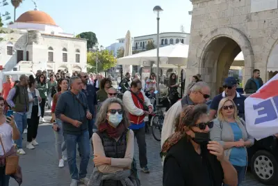 Απεργιακή συγκέντρωση, μετά από κάλεσμα του Εργατικού Κέντρου Β.Σ.Δ., πραγματοποιήθηκε το πρωί της Τετάρτης 9 Νοεμβρίου, στην πλατεία Ελευθερίας Κω με τη συμμετοχή φορέων, σωματείων ιδιωτικού και δημοσίου αλλά και αντιπροσωπειών του Π.Α.ΜΕ. και του ΣΥΡΙΖΑ ΒΣΔ.