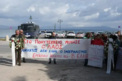 Φέτος, να ακουστεί ακόμη πιο δυνατά πως ο λαός δεν διαλέγει στρατόπεδο ληστή στον πόλεμο, αλλά βρισκόμαστε στο πλευρό των δύο λαών που σηκώνουν τα βάρη του πολέμου και δεν σταματούν να μετρούν τάφους και νεκρούς. Το σύνθημα «Έξω αι ΗΠΑ, Έξω το ΝΑΤΟ» που το 1973 ήταν γραμμένο πάνω στην πύλη του Πολυτεχνείου, σήμερα πρέπει να γίνει πράξη με άμεση απεμπλοκή της χώρας από ΝΑΤΟ, από ΕΕ.