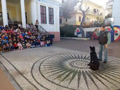 Έγινε επίδειξη του αστυνομικού σκύλου ανίχνευσης ναρκωτικών «Schwartz» της Υποδιεύθυνσης Ασφαλείας Ρόδου από τον χειριστή - συνοδό του με έμφαση στο πώς πως ένας ειδικά εκπαιδευμένος σκύλος ζει ως αναπόσπαστο μέλος της οικογένειας συνοδού του και διαμένει μαζί του χτίζοντας μια σχέση εμπιστοσύνης, αλληλεξάρτησης, επικοινωνίας, αγάπης και συνεργασίας, που αποδίδει το μέγιστο στις επιχειρήσεις που συμμετέχουν. Επίσης αναπτύχθηκε το θέμα της ευζωίας των δεσποζόμενων ζώων.