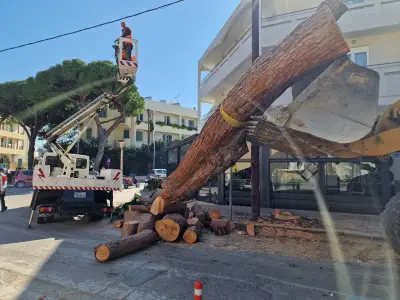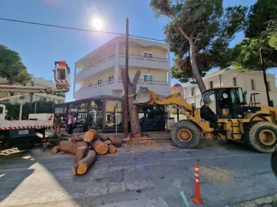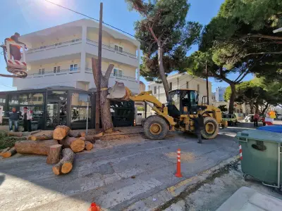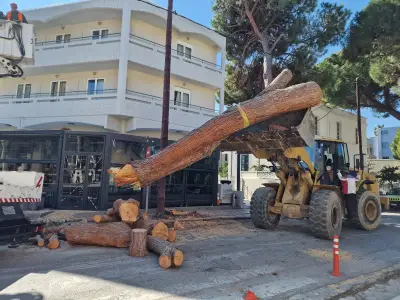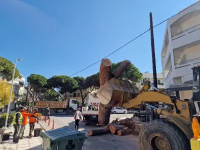 Η επιχείρηση απομάκρυνσης του δέντρου ξεκίνησε από την προηγούμενη Πέμπτη, ενώ την Παρασκευή 10 Φεβρουαρίου το Πεύκο κλαδεύτηκε, έτσι ώστε σήμερα Δευτέρα από νωρίς του πρωί τα συνεργεία της Υπηρεσίας Πρασίνου και του Εργοταξίου να ολοκληρώσουν την απομάκρυνση του κορμού του.