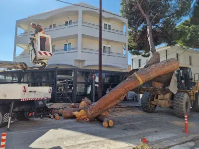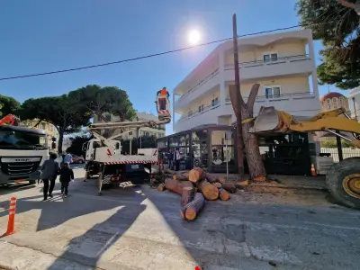Λίγο μετά τις 12 το μεσημέρι της Δευτέρας 13 Φεβρουαρίου ολοκληρώθηκε η επιχείρηση απομάκρυνσης του τεράστιου πεύκου στη διασταύρωση Ελ. Βενιζέλου & Κοραή.