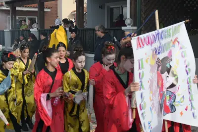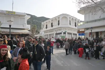 Ξυλοπόδαροι, κλόουν και μασκότ, αλλά και τα τμήματα που παρέλασαν, δημιούργησαν μοναδική ατμόσφαιρα, με την Βασίλισσα του Καρναβαλιού Ιουλία Καραθωμά, να δίνει το έναυσμα για την έναρξη της παρέλασης των καρναβαλιστών.