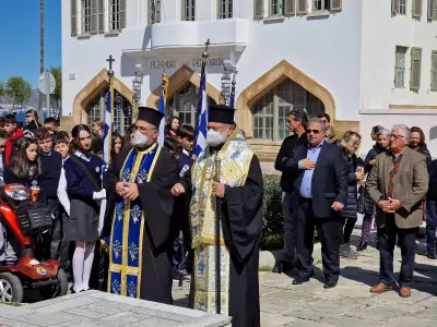 Προσκύνημα από αντιπροσωπείες μαθητών της Πρωτοβάθμιας και Δευτεροβάθμιας Εκπαίδευσης Σχολείων της πόλης, Προσκόπων και Οδηγών στο Μνημείο των Ηρώων και Τρισάγιο από το Σεβασμιώτατο Μητροπολίτη Κώου και Νισύρου κ.κ. Ναθαναήλ και τον Ιερό Κλήρο, πραγματοποιήθηκε στις 12 το μεσημέρι της Δευτέρας 6 Μαρτίου στην πόλη της Κω, ενώ ακολούθησε κατάθεση στεφάνων από Μαθητές, Προσκόπους, Οδηγούς, Λύκειο Ελληνίδων, Ιδρύματα, Σωματεία, Συλλόγους της πόλης, παρουσία των Τοπικών Αρχών και των Εφεδροπολεμιστικών Οργανώσεων.