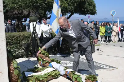 Πραγματοποιήθηκε στις 12:30 το μεσημέρι του Σαββάτου 25 Μαρτίου, η Επιμνημόσυνη δέηση στον Βωμό της Πατρίδας και κατάθεση στεφάνου, στο Ηρώο.