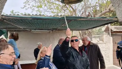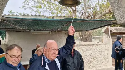 Στις 12 το μεσημέρι την καμπάνα χτύπησε ο κ. Αντώνης Θαλασσινός και όπως ορίζει το έθιμο ''έπεσαν'' βαρελότα και κροτίδες.