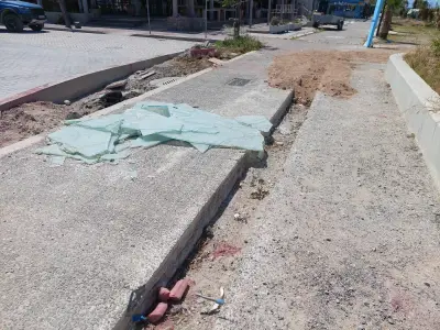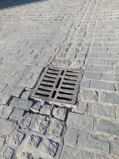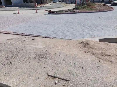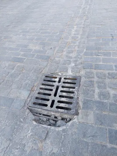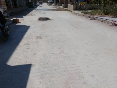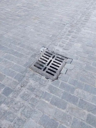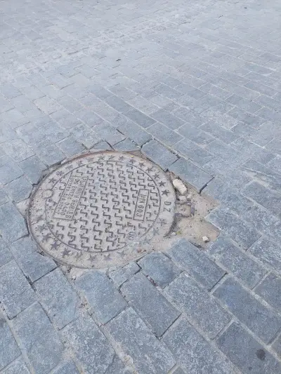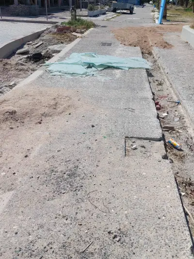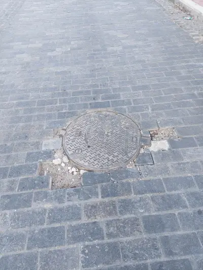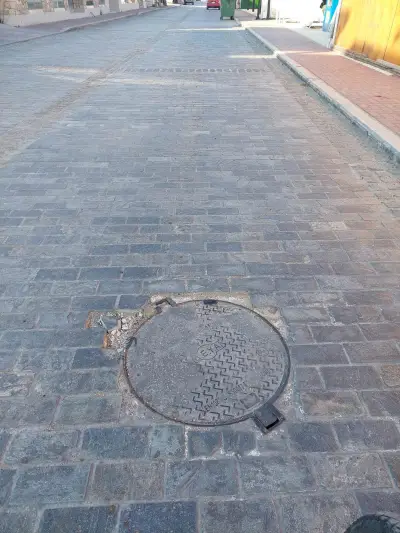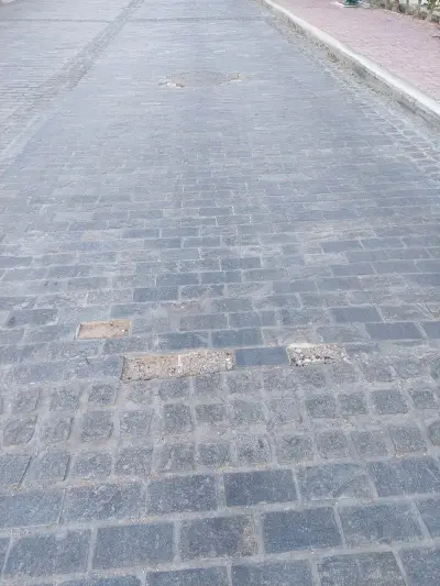 Ξεκολλημένοι κυβόλιθοι , ξεκολλημένα φρεάτια , Μπετό βέργες στην επιφάνεια , και οι επαγγελματίες να κάνουν μόνοι τους συντήρηση του δρόμου κολλώντας με αδρανή υλικά τους κυβόλιθους!!!