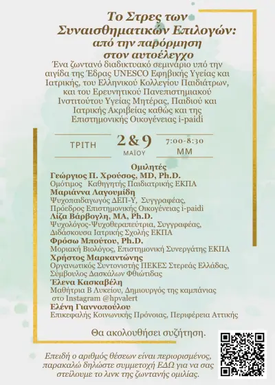 Στο παρόν σεμινάριο παρουσιάζεται συνοπτικά το στρες, η φυσιολογία του και πώς αυτό επηρεάζει το σώμα και τον εγκέφαλο του ανθρώπου. Δίνεται έμφαση στην εφηβεία και τον αντίκτυπο του στρες στην ανάπτυξη του ανθρώπου σε αυτή την εξελικτική περίοδο της ζωής του. Παρουσιάζονται οι συναισθηματικές επιλογές που καλούνται να κάνουν οι έφηβοι στην κοινωνική τους ζωή και τις διαπροσωπικές τους σχέσεις. Εξετάζονται διάφοροι παράγοντες, με έμφαση στον αυτοέλεγχου, στο φάσμα από τις μικρές δυσκολίες μέχρι τη ΔΕΠ-Υ. Παρουσιάζονται θέματα όπως οι φιλίες, οι ρομαντικές σχέσεις, αλλά και το bullying όπως αυτά σχετίζονται με τον αυτοέλεγχο ή την έλλειψη αυτού. Στη συνέχεια παρουσιάζονται πρακτικές τεχνικές που μπορούν να εφαρμόσουν γονείς και εκπαιδευτικοί για να βοηθήσουν τους εφήβους να αποκτήσουν καλύτερο αυτοέλεγχο, να κάνουν καλύτερες συναισθηματικές επιλογές, να μειωθεί το bullying και να έχουν καλύτερη ψυχική υγεία και ζωή.