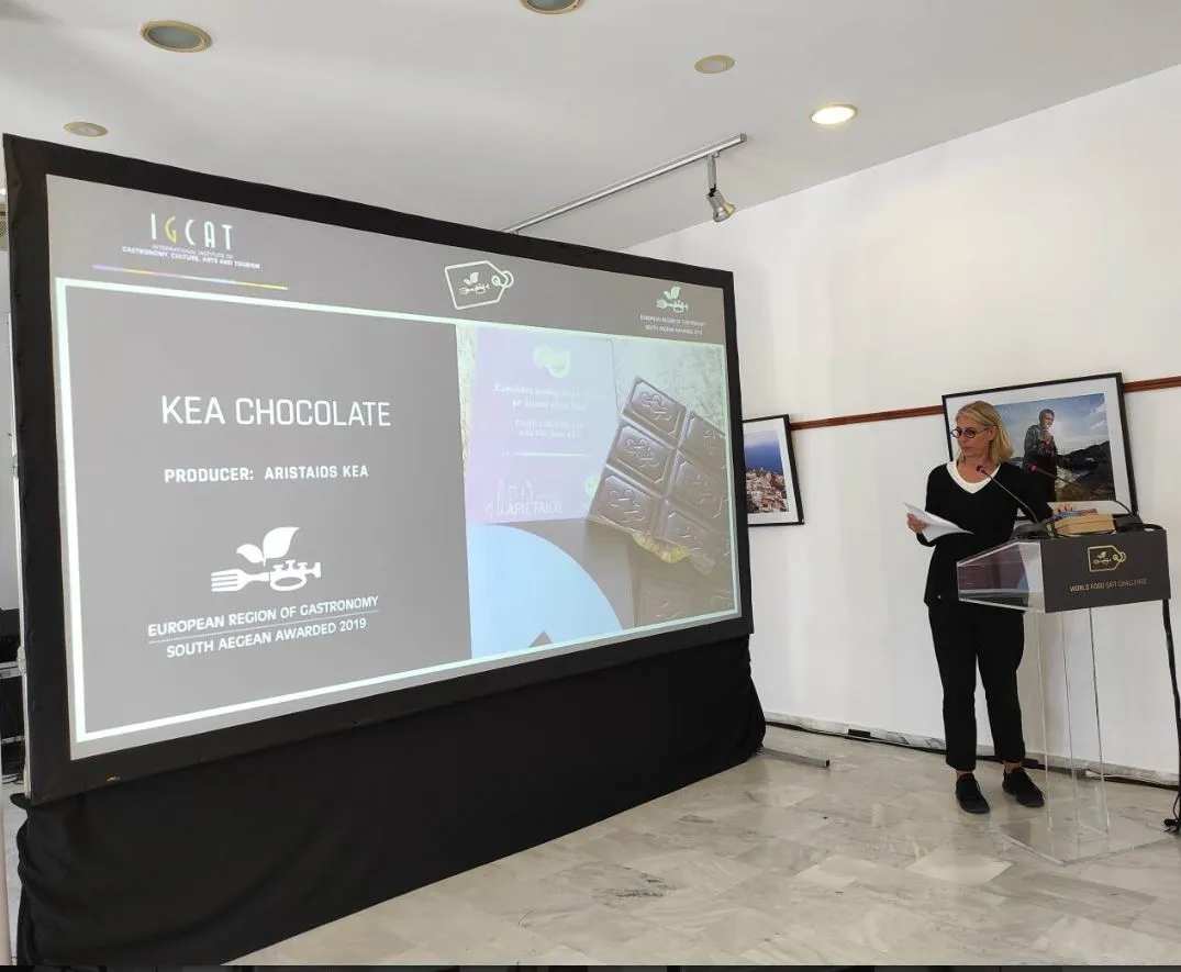 Συγκεκριμένα, η Πρέσβειρα της Κουζίνας του Αιγαίου, Σεφ Αργυρώ Μπαρμπαρίγου παρουσίασε τα έργα «Οι μαμάδες του Αιγαίου ξέρουν καλύτερα» και οι «Κηπουροί του Αιγαίου», ενώ την ετικέτα Aegean Cuisine, παρουσίασαν η Μαριτάνα Αλακιώτου – Ανθοπούλου, μέλος του ΔΣ στο Επιμελητήριο Δωδεκανήσου και η Χριστίνα Σαρρή, σύμβουλος Διοίκησης στο Επιμελητήριο Κυκλάδων.