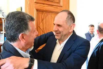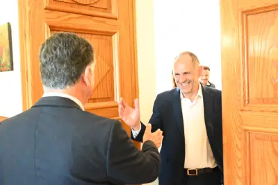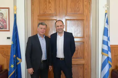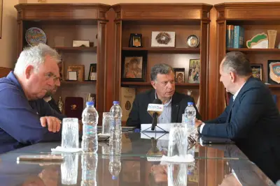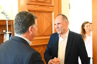 Τον Υπουργό Επικρατείας, αρμόδιο για τη διοίκηση του Υπουργείου Υποδομών & Μεταφορών, κύριο Γεώργιο Γεραπετρίτη υποδέχθηκε το πρωί του Σαββάτου ο Δήμαρχος Κω Θεοδόσης Νικηταράς στο Δημαρχιακό Μέγαρο.
