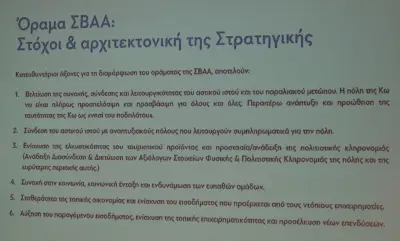 Η Στρατηγική Βιώσιμης Αστικής Ανάπτυξης μπορεί να συμπεριλάβει παρεμβάσεις μόνο στον αστικό χώρο κι ως εκ τούτου αφορά αποκλειστικά την αστική περιοχή της πόλης Κω.