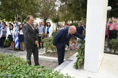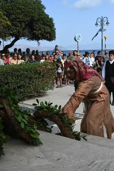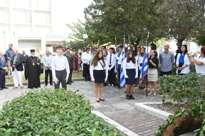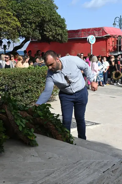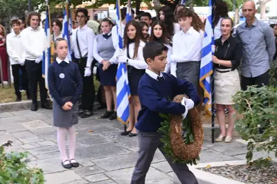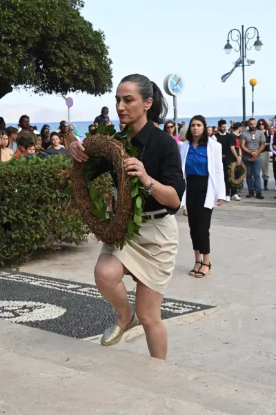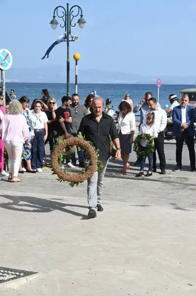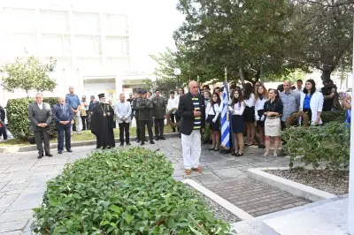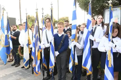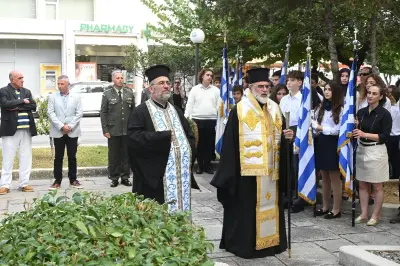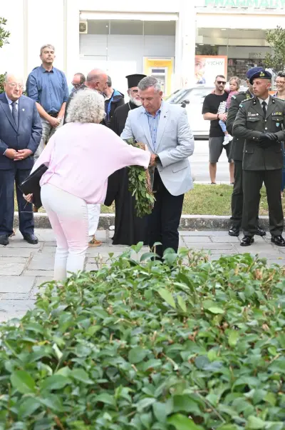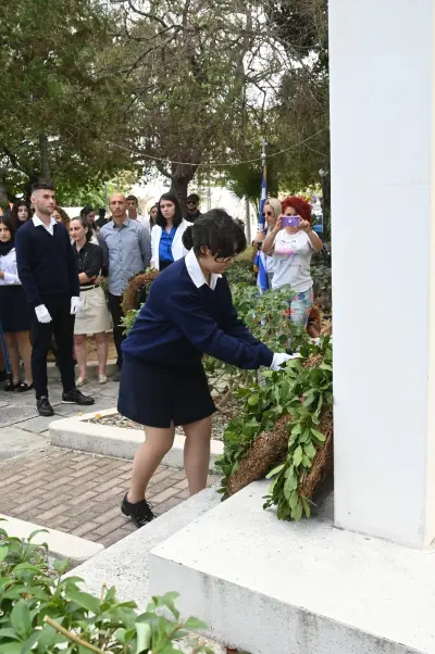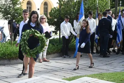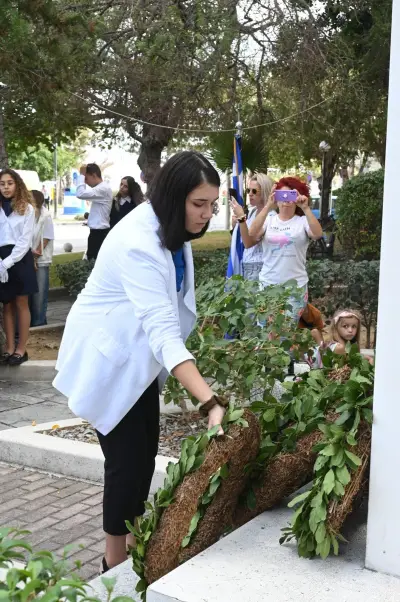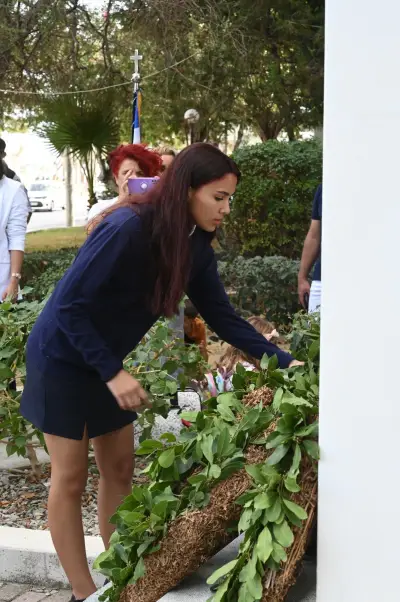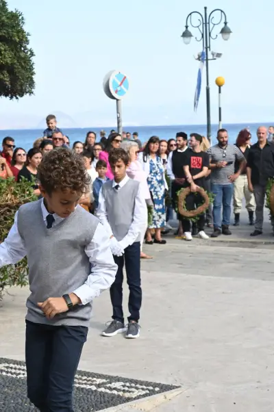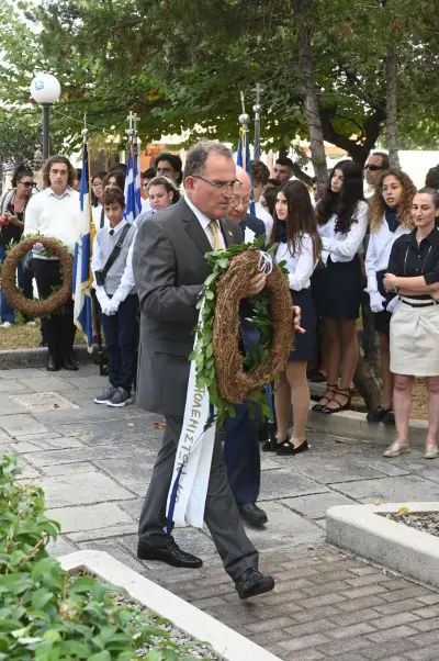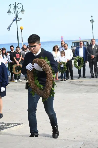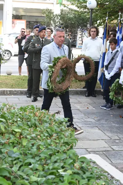 Αρχικά πραγματοποιήθηκε κατάθεση στεφάνων από Μαθητές, Προσκόπους, Οδηγούς, Λύκειο Ελληνίδων, Ιδρύματα, Σωματεία, Συλλόγους της πόλης με τη παρουσία των Τοπικών Αρχών και των Εφεδροπολεμιστικών Οργανώσεων, στο Μνημείο των Ηρώων.